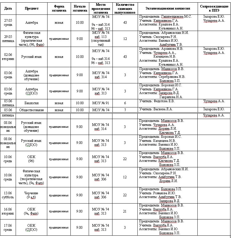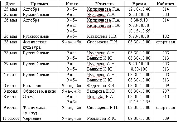 Расписание ГИА выпускников 9-х классов за 2008 – 2009